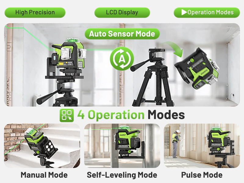 • Modo de Sensor Automático: Ajusta automáticamente el nivel láser, minimizando la intervención manual.